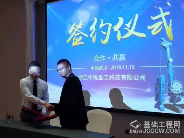观摩会上,常务副总高玉怀与大家分享了ZG70液压抓斗的性能优势及诸多技术亮点,行业专家丛霭森教授的发言更是让与会人士深切感受到地连墙领域的远大发展前景与未来,其后的订单现场签约环节更是将观摩会气氛推向高潮。