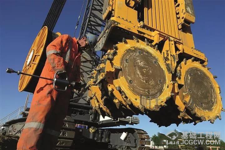 图为在加拿大FalCon项目上施工的宝峨BC 50 / MC 128铣槽机