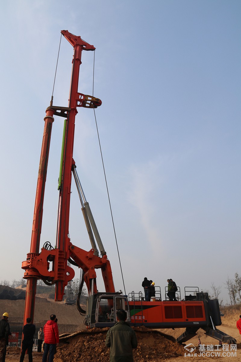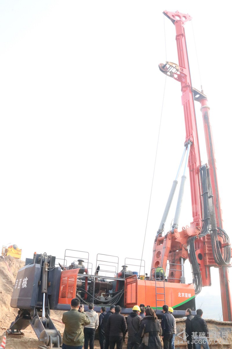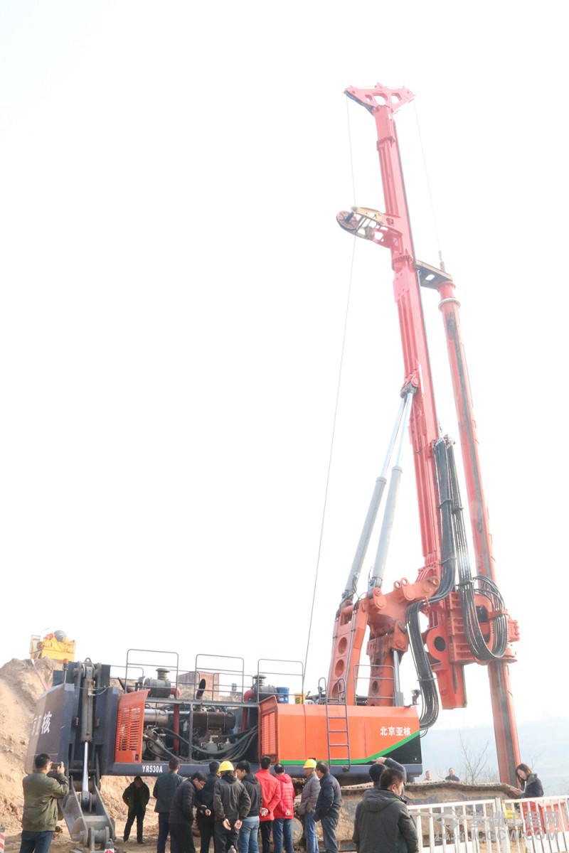 期间秘书长黄志明、副秘书长郭传新等一行领导观看了YR530A钻机的现场施工情况。并听取了北京亚核总经理赵鑫宇对此次出厂的YH.R530-80M型旋挖钻机特性的讲解,它采用了北京亚核的多项专利: