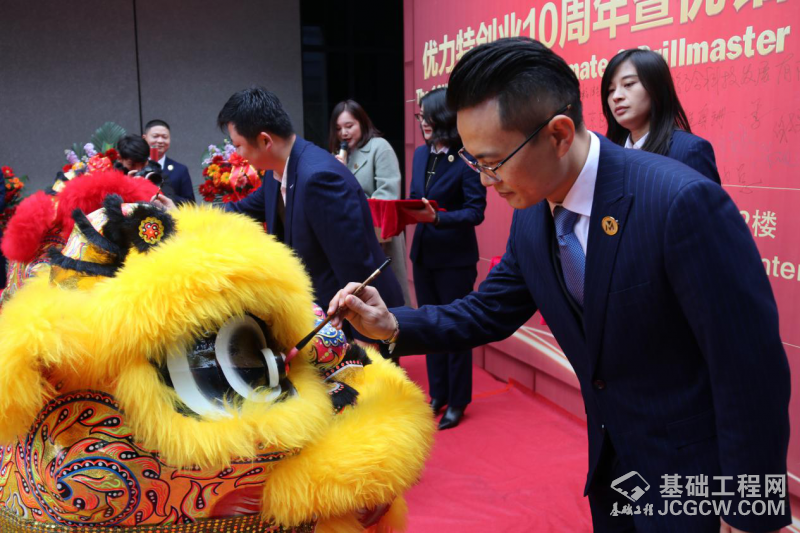 优钻集团的执行董事申超和总经理申德义上台为金狮子和红狮子点睛。左点金,右点银,中间点太平,点睛寓意启灵会带来灵气和生机。醒狮表演预祝优钻集团生意兴隆、财源广进、万事如意,也预示着优钻集团也将从此开启新的征程。