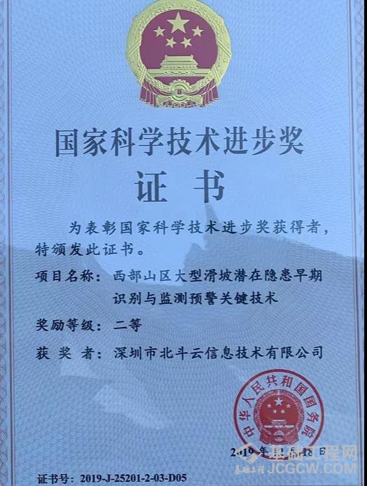 由成都理工大学地质灾害防治国家重点实验室主导,北斗云以及多家重点院校共同参与完成的《西部山区大型滑坡潜在隐患早期识别与监测预警关键技术》项目荣获2019年度国家科学技术进步奖①二等奖。