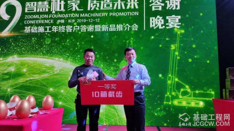 为了进一步感恩并回馈广大客户朋友,中联重科向参会客户详细介绍了公司基础施工系列产品的年终客户答谢促销政策。凡在活动期间,客户朋友们购机即送多重大礼,同时还能参与晚宴现场随机抽奖、“砸金蛋”以及“免费抽取中联重科自制钻杆”等激动人心的游戏互动环节。