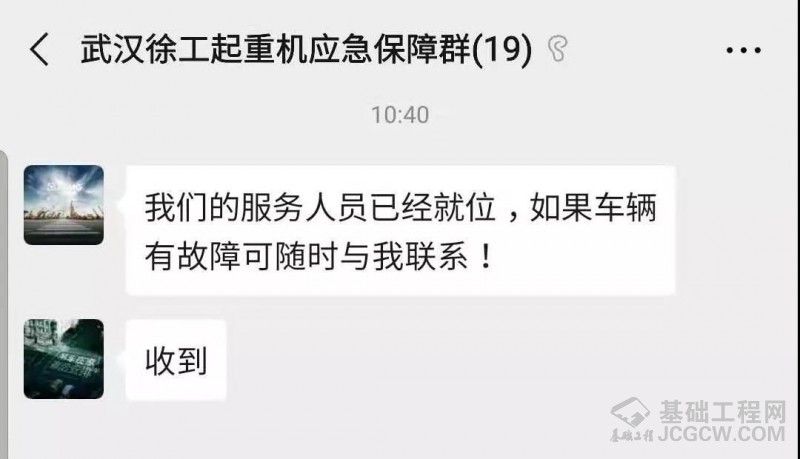 1月25日,徐工起重机械事业部武汉代表处主任曹强召集武汉周边起重机用户,成立“武汉徐工起重机应急保障微信群”,武汉吊装用户积极响应,纷纷报备车辆资源,随时候命,已集结10余台起重机,并按照中建三局要求主动报备车辆台数和位置,随时应战。