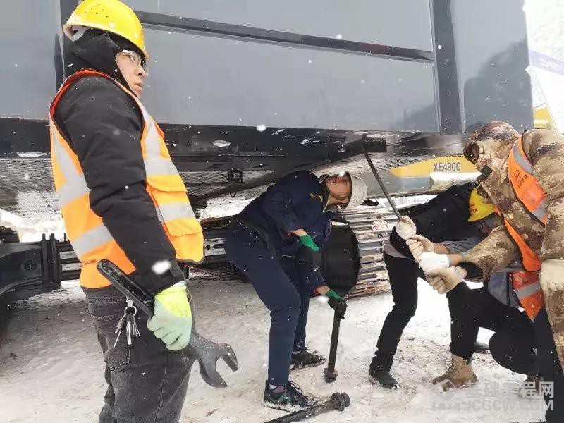 经过7个多小时的抢战,终于在下午五点前,巍峨高大的旋挖钻机在白雪皑皑的工地上矗立起来,被冻得满脸通红的他们终于松了一口气。现场的项目部领导由衷地竖起来大拇指,直夸“徐工服务好!名不虚传”。