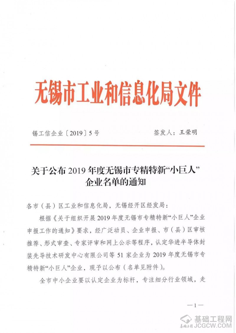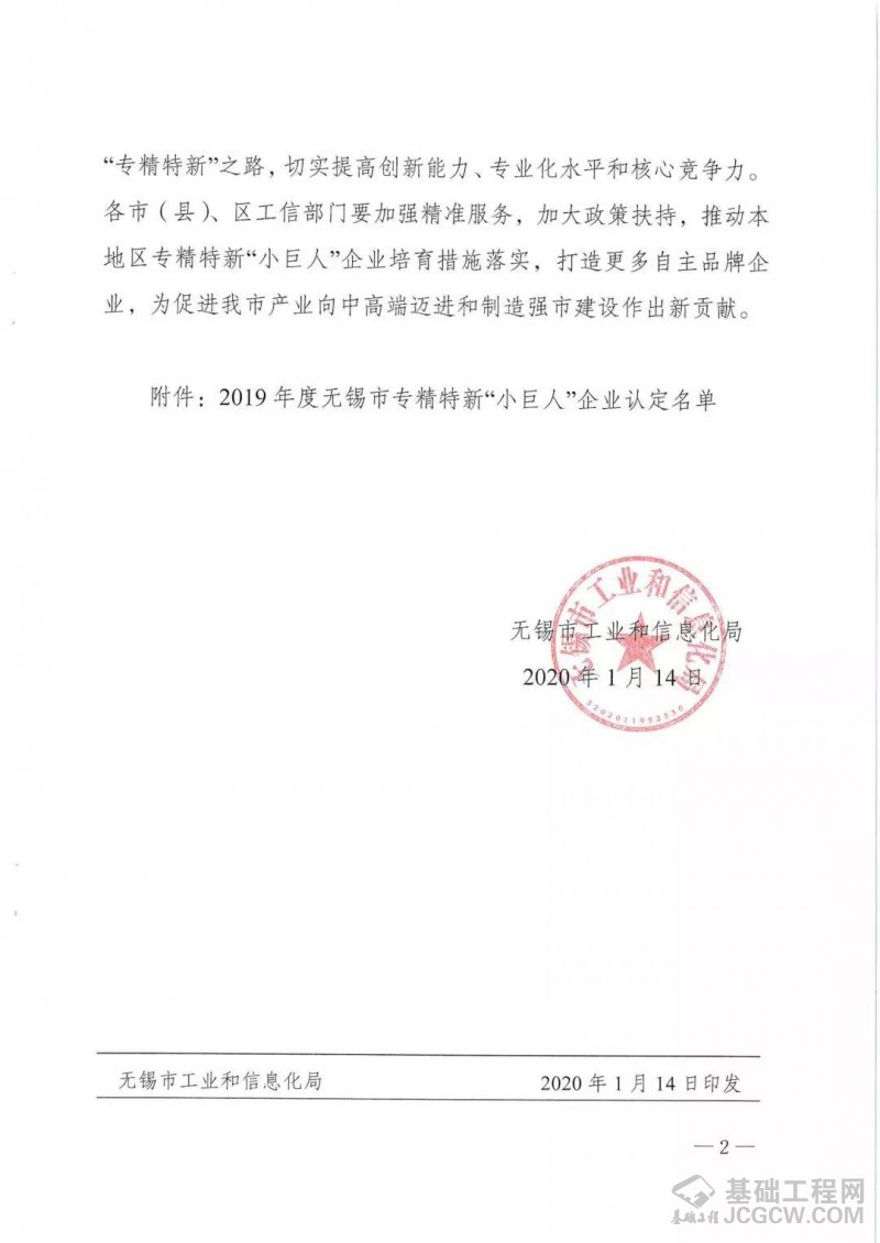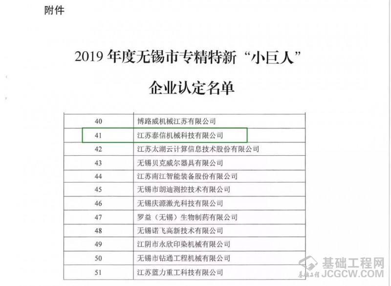 核心提示: 近日,无锡市工业和信息化局公示了2019年度无锡市专精特新小巨人企业拟认定名单,江苏泰信机械科技有限公司成功获评无锡市专