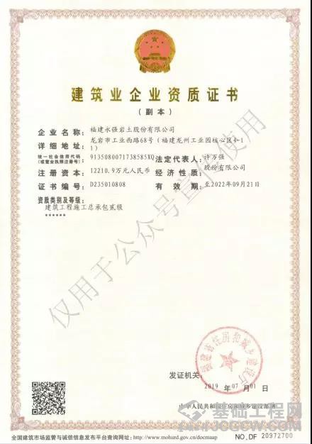 永强岩土不断丰富资质结构,已取得地基基础工程专业承包一级、建筑工程施工总承包二级、港口与海岸工程专业承包三级、建筑装修装饰工程专业承包二级、市政公用工程总承包三级及地质灾害治理工程施工乙级、工程勘察劳务等资质;资质结构的不断完善进一步拓宽永强岩土业务承揽范围,增强项目竞标能力及工程承揽能力。