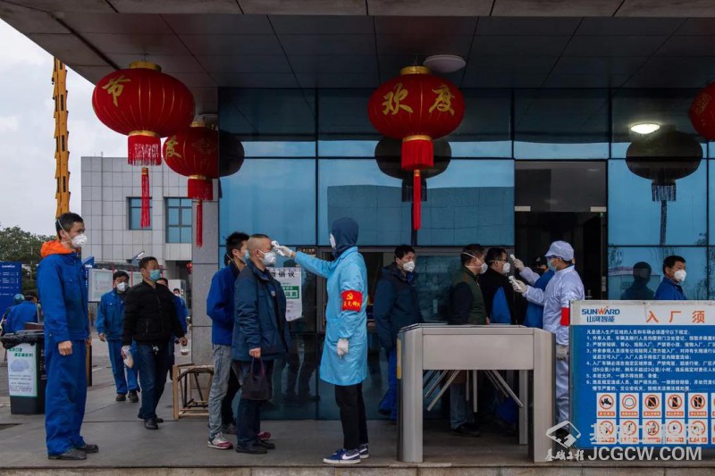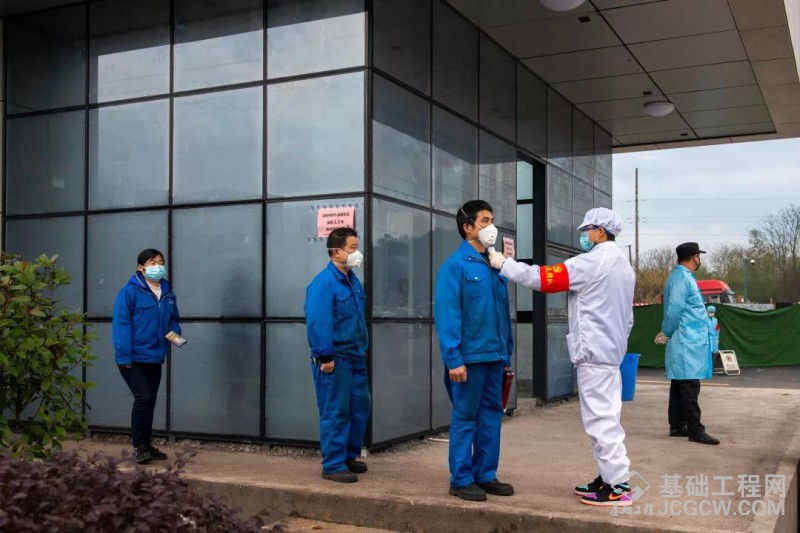准备上工前,安全生产怎样强调也不过分,只不过,现阶段疫情防控更是重中之重。工人们戴着口罩,相距一米五站立,聆听车间领导强调的一条条注意事项。