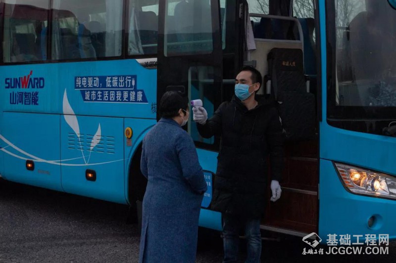 不到7点,山河智能党员先锋队的志愿者们就早早来到山河工业城大门口,协助门岗为进厂的人员测量体温,让大家有序进厂。