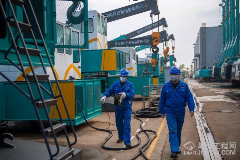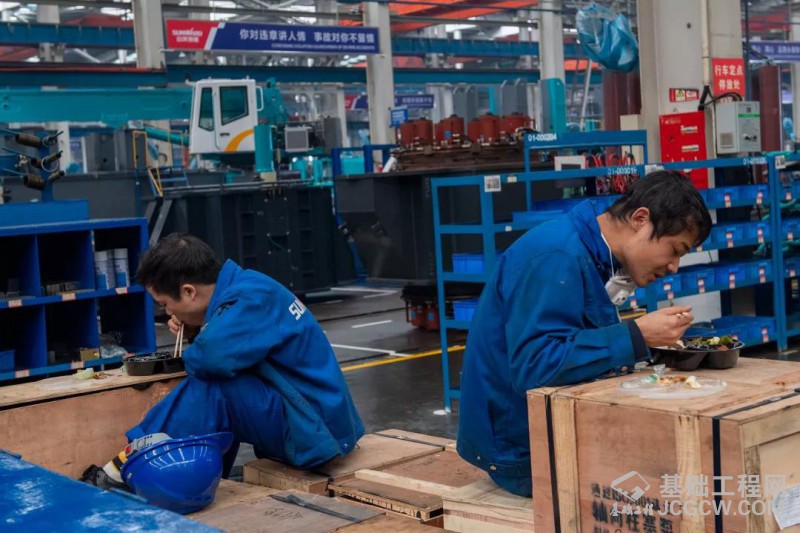 会后,山河智能一天的生产就正式开始啦!工人们在各自的工位上忙碌开来。