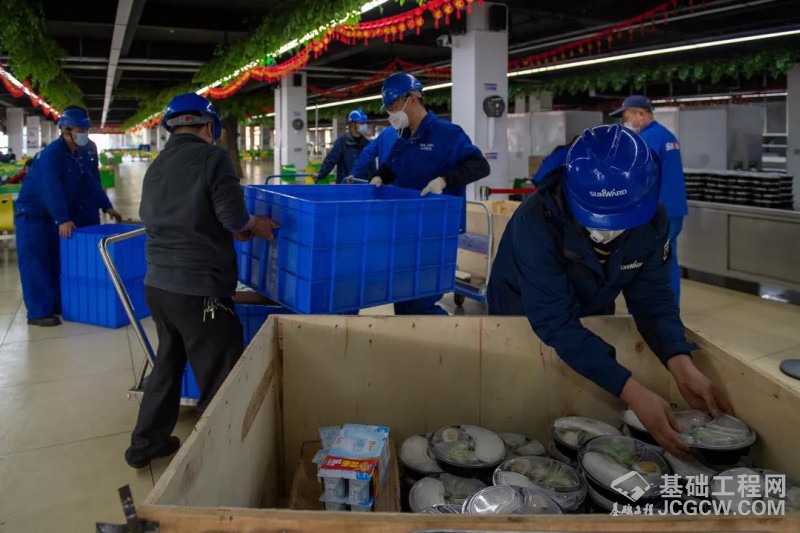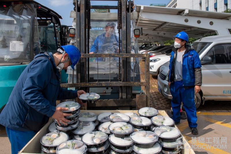 上午十点半,与厂房火热的生产场景相比,餐饮中心的忙碌毫不逊色。在志愿者的协助下,师傅们正在忙着分装员工饭食。分装好的盒饭,将由各部门的代表前来领取。人多的车间,这时候叉车就有了新的用武之地,叉车干起了叉盒饭的活。叉车:“你们这不是让我大材小用了嘛!”