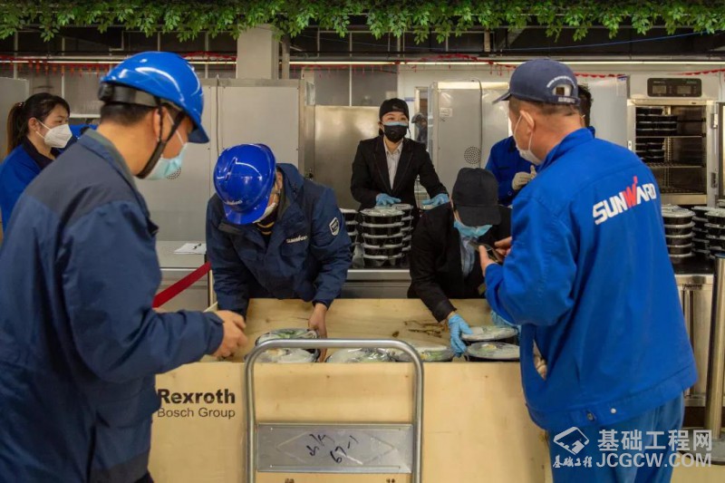 疫情防控期间,为避免人员密集,减少交叉感染的风险,山河智能员工采取的是分时段分散就餐。