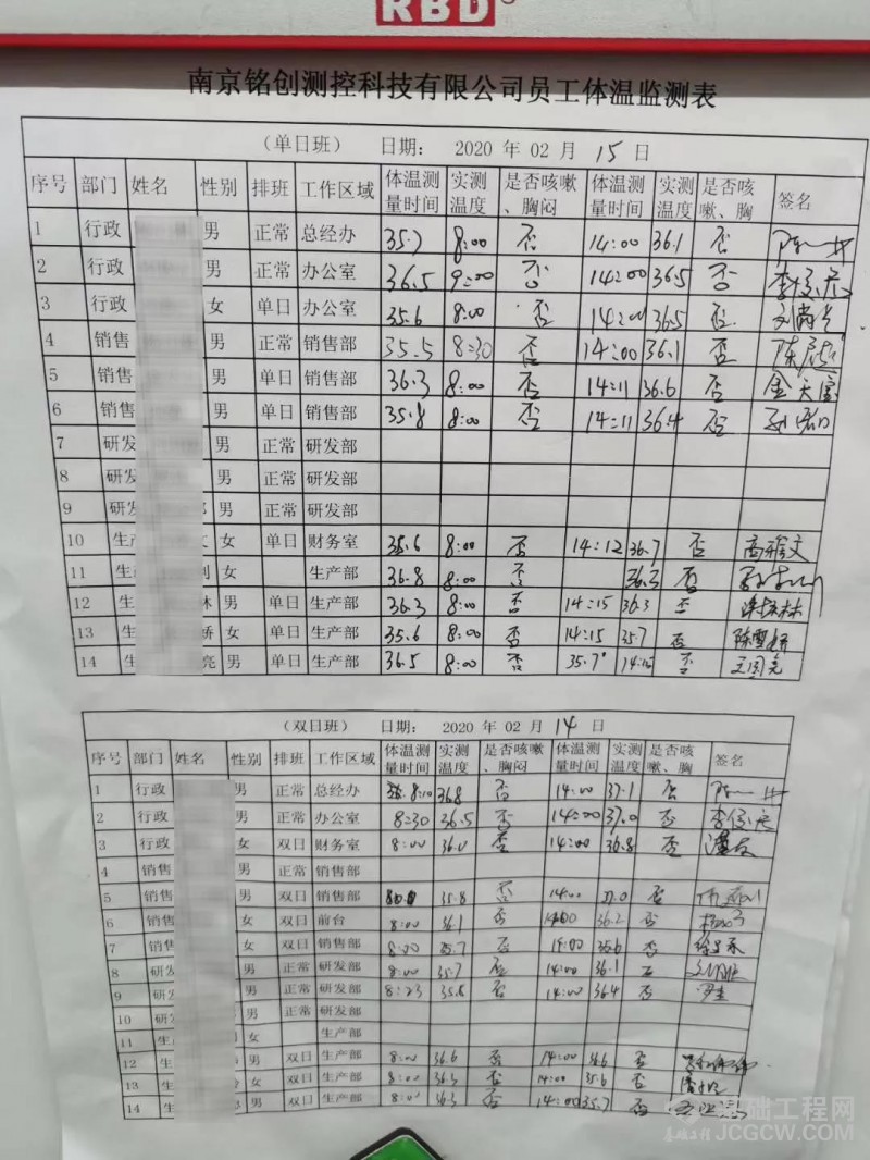 ⑥ 每天测量体温和监测症状两次,时间为8:00进入铭创科技之前和14:00,将监测结果记录下来,并督促职工初现症状主动汇报;
