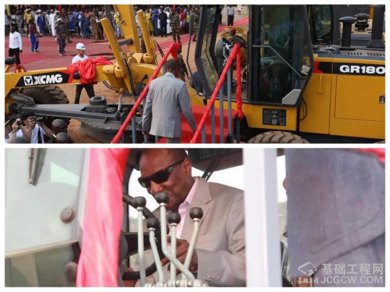 2018年,几内亚1号国道,科亚-马木—达博拉段公路项目启动仪式上,几内亚总统阿尔法·孔戴亲自登上徐工道路机械设备操纵、试驾,并盛赞徐工产品的优良性能。目前,徐工已成为几内亚乃至非洲工程机械行业第一品牌!