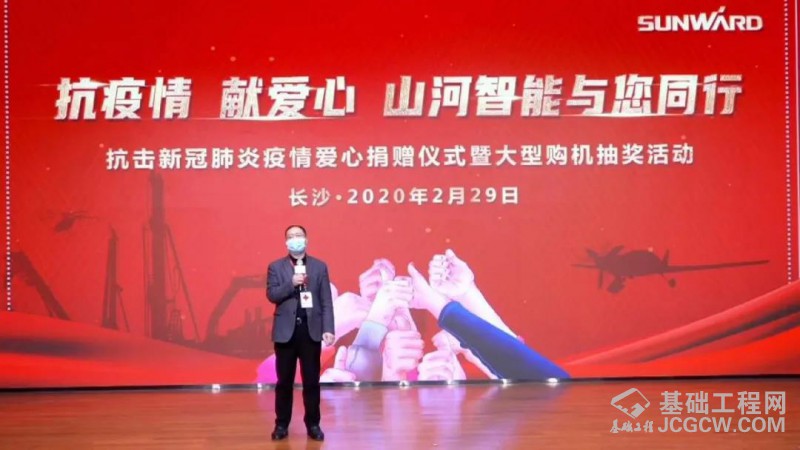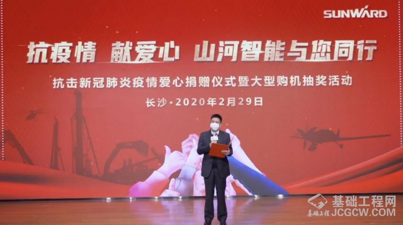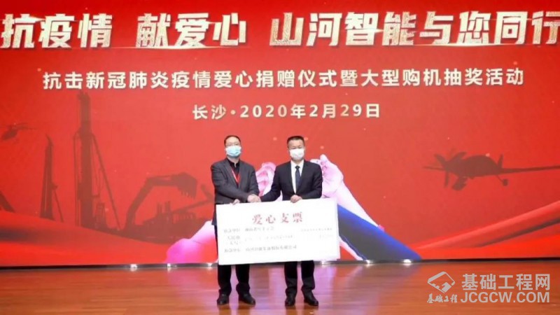 2月29日晚,以“抗疫情、献爱心 、山河智能与您同行”为主题的山河智能抗疫爱心捐赠仪式暨购机抽奖活动在山河工业城办公楼国际会议厅举行。湖南省红十字会事业发展部部长彭跃文,山河智能总经理付向东,执行总经理夏志宏,副总经理、营销中心总经理、挖掘机事业部总经理龙居才等参加活动。此次活动无现场观众,以线上直播的形式开展。