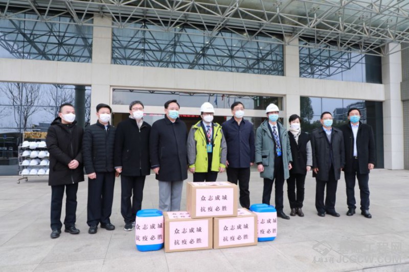 最后,莫主席还代表上海总工会为中联重科赠送了口罩、消毒液等疫情防护物资,并合影留念。