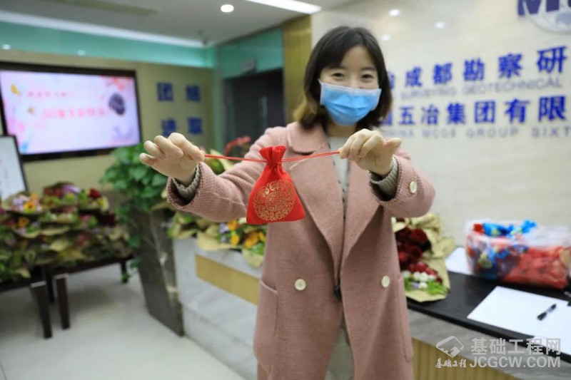 3月6日一早,刚走进中冶成勘大门的女职工们就收到了中冶成勘工会精心准备的一份惊喜:防疫香囊和一束美丽的鲜花。“香囊盛烟绣结络,翠羽拂案青琉璃。”香囊,传承越千年而未泯,能达到芳香化浊,预防疾病的效果。中冶成勘以鲜花、香囊为媒,将美满、健康、快乐的美好寓意传递给全体女职工,以此表达节日的问候和祝福。