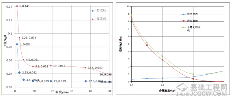 各粒级物料E值关系趋势图及错配物局部曲线图