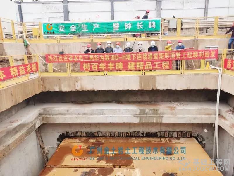 华为坂田D-H地下连接通道矩形顶管工程,位于深圳市龙岗区稼先路与坂雪岗大道相交处西侧附近。华为D区东门北侧和H区西门北侧设置有公交站台和华为公司专用班车停点。五和大道与贝尔路、隆平路交界处分别设置有灯控人行横道,南北侧的灯控人行横道距离D-H人行横道的距离均有两百多米,早晚高峰期间公交车辆来往停靠频繁,阻塞交通。为缓解交通压力,修建D-H区地下人行过街通道,为不影响地面交通该通道采用矩形顶管工法施工。