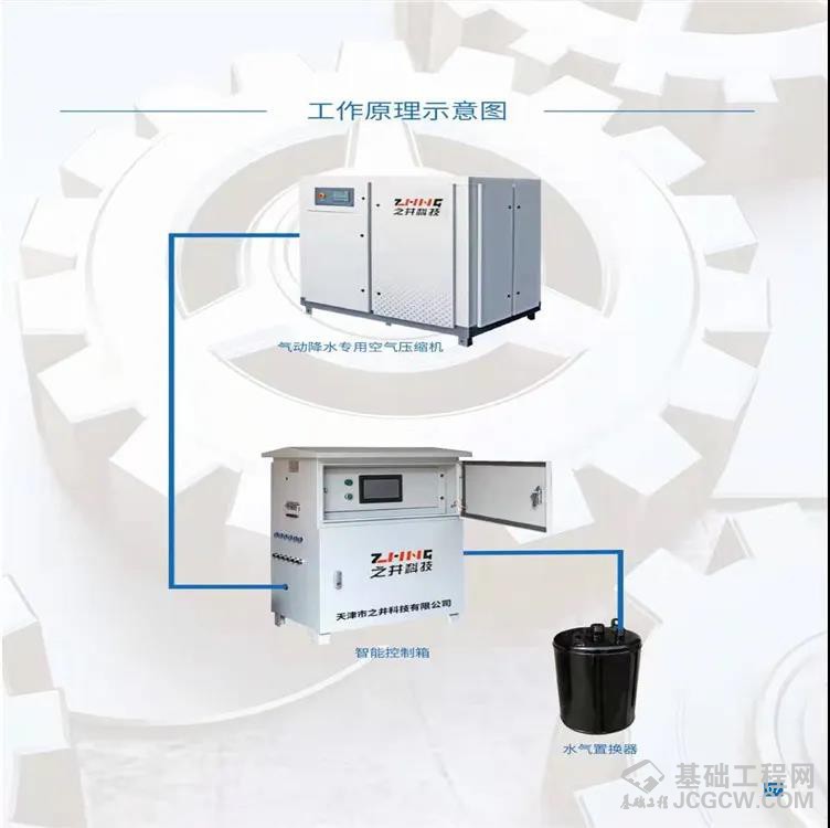气动降水设备基于自身的动力集中输出,方便于自动化的实施,也方便于功能一体化的实施。气动降水设备集中了降水工程中所需的大部分功能,包括抽水、抽真空、计量、可调扬程、可调流量、问题自检、水位监测、风险预警、数据采集、分析等。其整体的安全性更是传统降水设备无法比拟的,自带安全文明施工属性,更好的体现了安全、节能、环保的绿色施工理念。