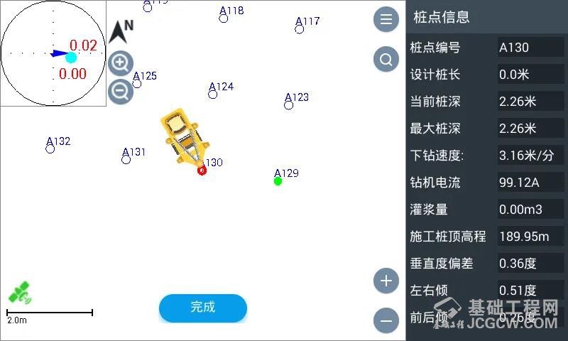 系统的前端操作界面非常简单,可直接引导机手到离钻头最近的桩点,与现场放样的标记相配合,不仅能大幅节省工人的对桩时间,而且能有效避免由于现场施工影响(比如桩点标记被土覆盖、土地变形等)而造成的对桩误差。