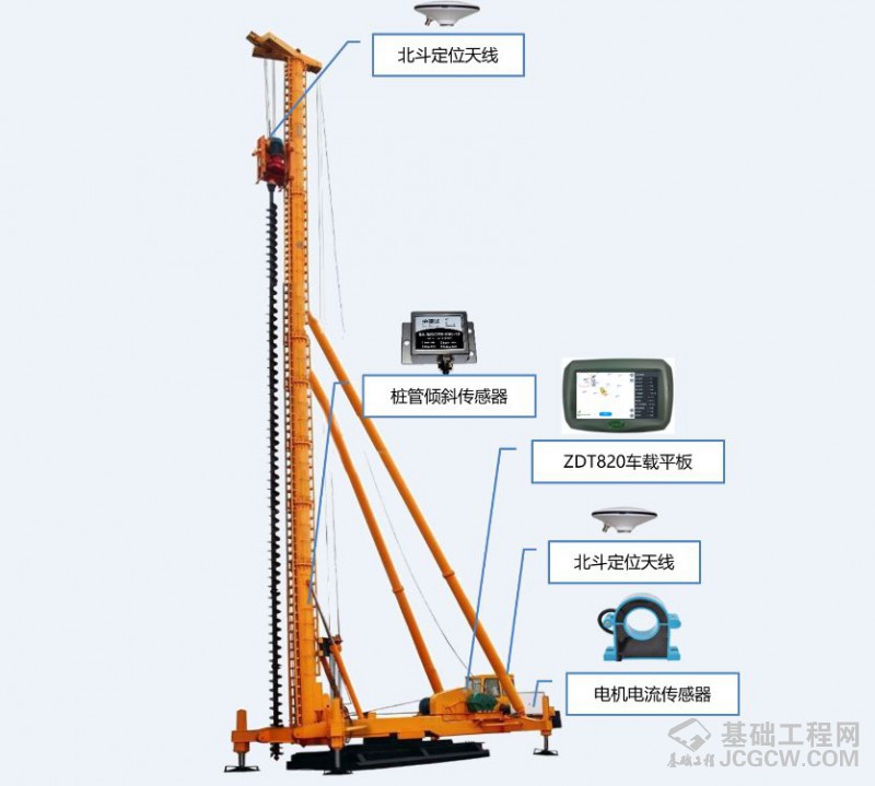 桩管倾斜传感器:装在桩机的桅杆上,实现对钻杆的垂直度进行实时监测和采集。