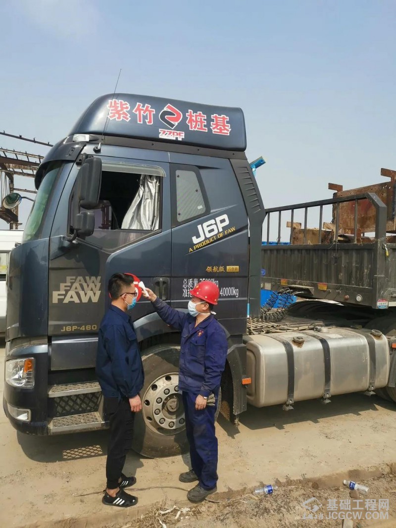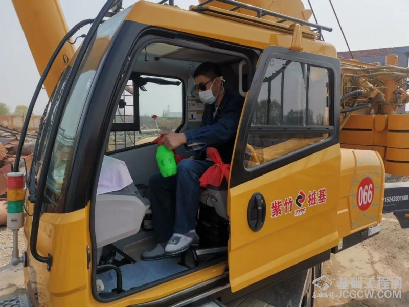 在具备复工条件之后,紫竹桩基根据全国各地疫情情况和施工现场的具体要求,编制了完善的疫情防控工作方案和应急处置方案,积极准备复工所需的物资,现场工作人员每天例行两次测量体温、全体作业人员均佩戴口罩、机械设备定期消毒,在做好疫情防控的前提下,有序有力积极推动各地工程陆续复工。