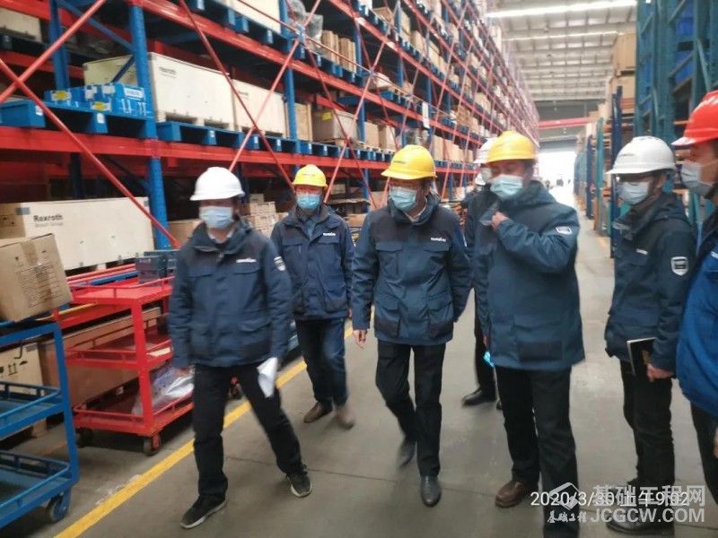 检查组首先来到基础装备物流仓库,总经理付向东对仓库出入人员的管理及智能化高位货架的安全性进行了详细询问。他强调,山河智能正在推进的智能制造,改善了员工作业的安全性,自动化设备必须要严格规范化管理,防止出现设备伤人事故。
