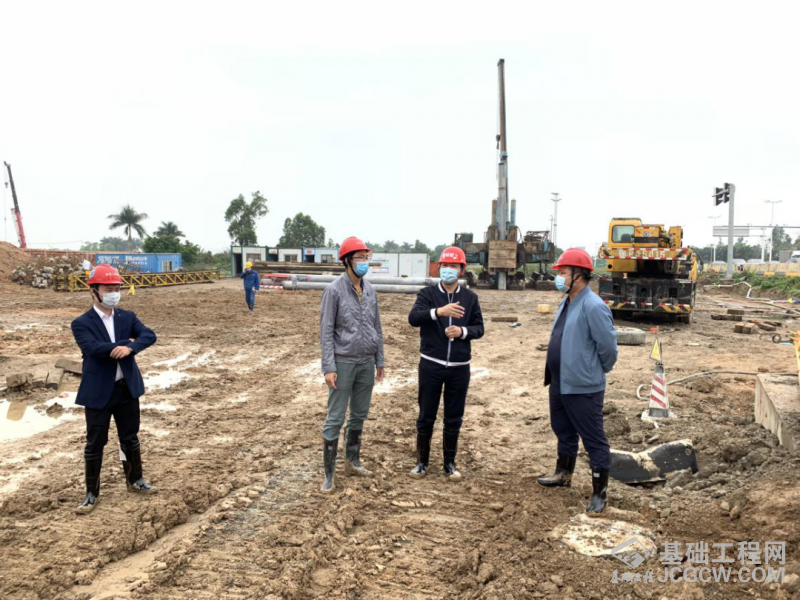 在项目现场,郭克诚董事长通过现场负责人的工作汇报和实地考察,详细了解了项目的生产情况以及前期的试桩检测情况,对相关技术问题做了详细指导,指出珠海大道扩建工程先行标项目是整个珠海大道扩建工程的开端,更是谦诚公司自主研发的“海相淤泥质土专用固化剂及配套工艺”正式市场化应用的开篇之作,对谦诚公司新工艺研发和成果转化应用而言,有着极其重要而又深远的意义。要求指挥部和项目部成员在面对全国疫情形势带来的巨大冲击下,更应该重视这来之不易的建设机会和施工条件,在做好疫情防控工作的同时,克服重重阻力与困难,加快推进工程建设,保质保量的完成施工任务目标,在为谦诚公司创造效益的同时尽快将自主研发创新成果推向更广阔的滨海市场。他鼓励现场每一位员工说,珠海是一个充满机遇、极具发展潜力的区域,珠海工程指挥部是一个年轻有活力的团队,要努力继承和发扬谦诚公司创新基因,一边沉下心学习成长、一边抬起头开拓奋进,将珠海工程指挥部建设成一个更加有战斗力的团队,为谦诚公司自主研发新工艺的不断进化和完善持续努力,为自主研发成果的更广阔市场化转化应用开疆辟土、做出贡献。