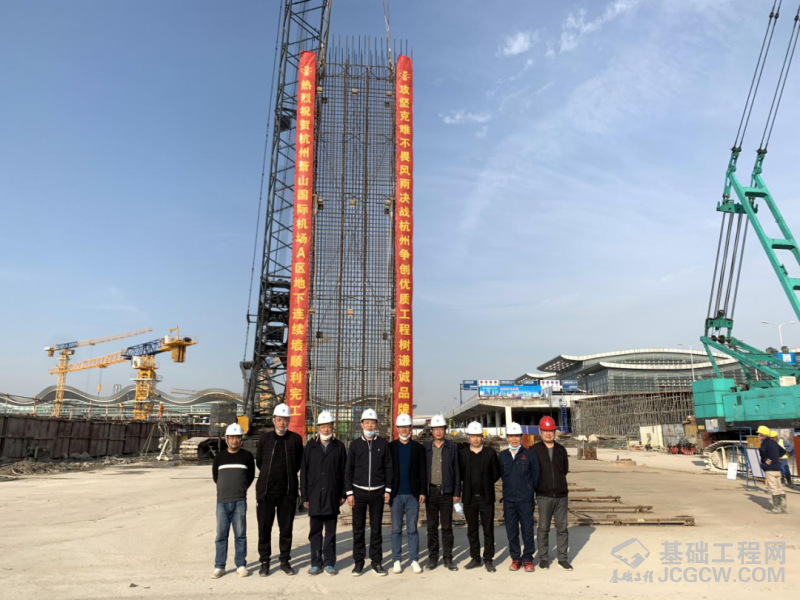 4月5日16点18分,随着杭州萧山国际机场三期项目新建航站楼及陆侧交通中心桩基及围护工程二期项目高铁站A2区最后一幅钢筋笼(AM一21)的缓缓起吊、平稳入槽,标志着A2区地下连续墙工程的施工圆满结束。公司董事长郭克诚、副董事长兼华东工程指挥部董事长李义勇、地下空间执行董事长吴松如、地下空间总经理兼华东指挥部指挥长王延海、顾问李汉旭、总工程师段昌恒等领导现场观摩,共同见证了该项工程的收官工序。至此,杭州萧山机场三期项目A2区地下连续墙工程正式完工,基本实现了节点工期目标,为后续基坑开挖赢得了时间,为早日安全建成机场高铁站点奠定了坚实的基础。