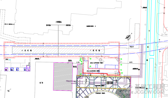 五广(上海)基础工程有限公司负责2号风道及六纬路A出入口的10根直径2.2m扩底3.5m的钻孔灌注桩(内插永久钢管柱),15根直径1mA型桩(内插格构柱),32根0.8m承台桩,4根临时桩(内插临时立柱)。工程预估工期为2020年7月15日完工。
