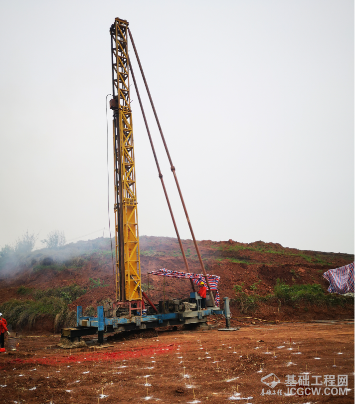 该项目的承接是谦诚桩工继泸州站之后在川南城际铁路建设中的又一次经营突破。大观中间站软基处理设计有多向水泥土搅拌桩、电渗塑料排水板及变截面挤密螺纹桩等,其中电渗塑料排水板和变截面挤密螺纹桩施工工艺为我公司自主研发工艺。在公司关心和支持下,自有设备顺利进场,具备开工条件,经项目部组织,在总包方中化路桥和监理的见证下举行了开工仪式,搅拌桩进入正式施工阶段。