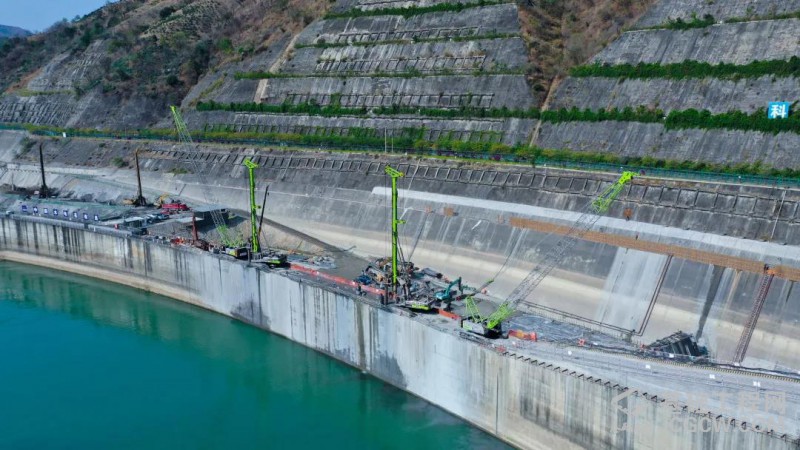▲中联重科旋挖钻、履带吊等设备助建桐子林水电站改造工程