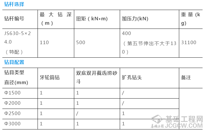(3)旋挖钻机大口径硬岩施工采用分级钻进,同时也需要根据施工深度考虑分段施工,从而提高捞渣施工效率。