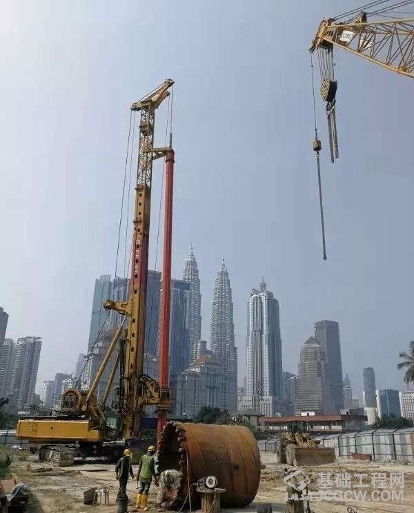 再比如,马来西亚吉隆坡M101项目中,共有108根桩,最大桩深要求100米,最大桩径2.5米,地下有溶洞。面对如此复杂的地质情况,北京中车重工的TR580F型旋挖钻机承担了助建马来西亚吉隆坡标志塔项目的重任。