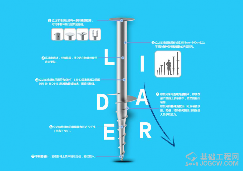 行业专家表示:“当前,地螺丝桩基础行业正以不可比拟的优势取代着传统的水泥、混凝土桩基础,而立达尔机械无疑是这场革命的领头人。”的确,立达尔机械深耕地螺丝业数十载,其地螺丝拥有一系列端部结构可用于各种现代建筑的基础,拥有长度从55cm~300cm以上不等的各种型号和设计的产品系列,承载能力可达300千牛以上(相当于30吨)。此外,专利的设计,能在各种土质中精准定位,轻松旋入。