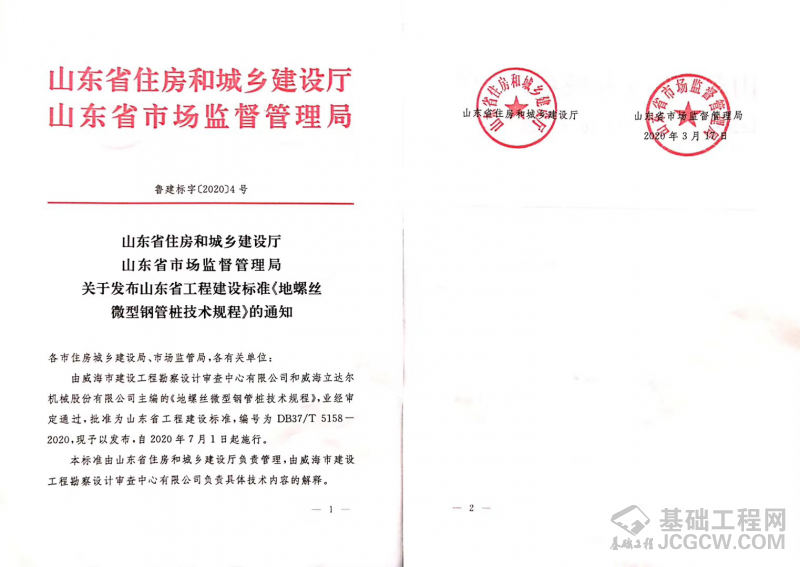 最新消息,山东省发布了工程建设标准《地螺丝微型钢管桩技术规程》,自此地螺丝行业有了全新行业标准大纲。据悉,该标准由威海市建设工程勘察设计审查中心有限公司和威海立达尔机械股份有限公司主编,现予以发布,自2020年7月1日起施行。作为地螺丝桩基础行业的领军者,威海立达尔机械长期以来专注于地螺丝新型桩基础的研发及施工,凭借高承载力、高使用寿命、环保经济等特性,深受建筑行业的青睐,并正引领地螺丝行业开启新型环保桩基础新时代。