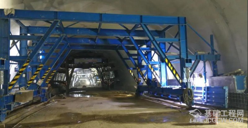 隧道内检修道采用专用门架式台车浇筑,具有施工效率高、外观质量好、不中断洞内交通等优势。