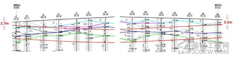 对软弱和碎石地质层,采用袖阀管高压注浆进行加固。