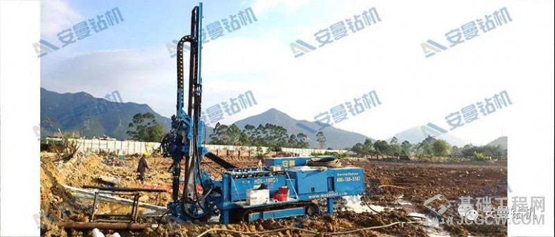 核心提示:安曼钻机HDL-180D1型顶驱钻机在广东清远旋喷引孔施工