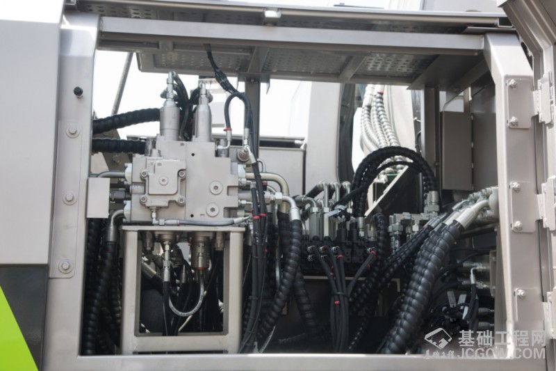 为了便于设备的转场,ZR240C-3同样也做了很大改进。其一是增加了吊锚架油缸,桅杆免拆去支撑,更加方便装拆;其二,这款产品可以不拆卸履带运输,使用900高的运输车辆进行运输时,整机高度不超过4.5米;可顺利通过限高装置。