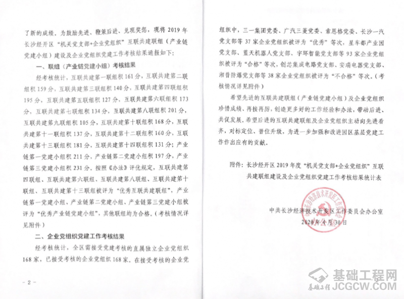 日前,长沙经开区党工委办公室下发红头文件《关于2019年长沙经开区“机关党支部+企业党组织”互联共建联组(产业链党建小组)建设及企业党组织党建工作考核结果的通报》,山河智能党委在企业党组织党建工作考核中被评为“优秀”等次。