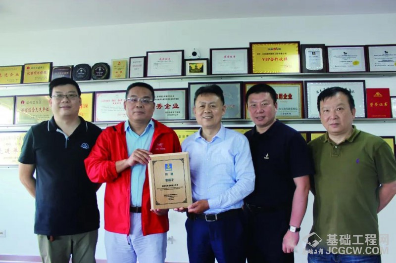 图为宝峨中国区销售总经理李明德(左二)为江苏通州基础工程有限公司总经理曹薛平(左三)颁发荣誉证书