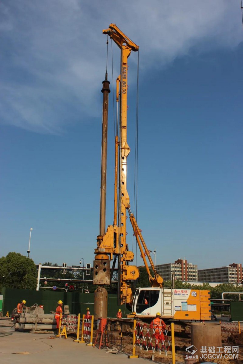 图为正在通州基础南京地铁6号线新生圩站施工的宝峨BG 30钻机