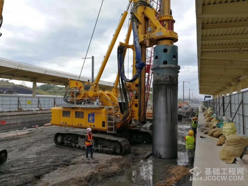 特别是在全套管施工领域,通州基础拥有领先的技术和设备,以及突出的业绩。上图为通州基础公司的宝峨BG 38钻机,在某高铁项目施工中,采用动力头驱动套管(不借助摇管机),成功完成了直径1.5米、最大深度32米的全套管桩施工。通州基础还采用全回转设备,创造了直径1.5米、深度143.8米的全套管施工纪录,为该工法在国内的推广起到了重要作用。