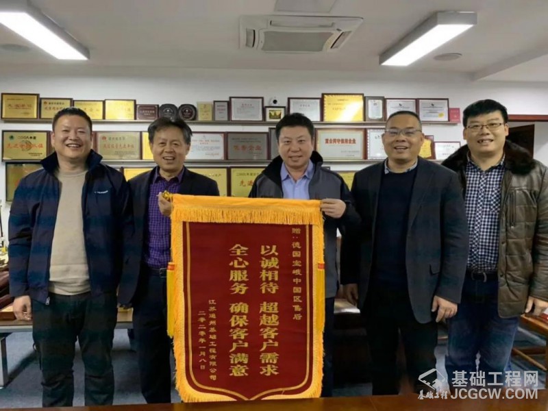 图为2020年初江苏通州基础公司向宝峨售后服务部门赠送锦旗