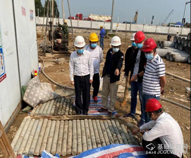 创新源自实践,同时也将更好的服务于实践。2020年3月2日,由谦诚桩工承建珠海大道扩建工程先行标项目正式开工,由此打开了该技术市场化应用的大门。项目深层搅拌桩共打试桩18根,每根桩长22米,在珠海交通集团鹤港公司、路桥公司等单位的见证下,中交二航局二公司对谦诚桩工采用海相淤泥质土专用固化剂施工的搅拌桩进行抽芯与静载荷质量检测,经广东全科工程检测有限谦诚桩工和苏交科集团广东检测认证有限谦诚桩工分别检测认定:桩身整体均匀良好,芯样连续、完整、坚硬,搅拌均匀,呈短柱状,局部成块,桩底持力层为淤泥质黏土,满足设计要求;搅拌桩桩身强度代表值分别为1.59~3.55Mpa,远大于设计值的0.8Mpa,满足设计要求;单桩竖向抗压极限承载力均为220KN,检测结论是复合地基水泥搅拌桩单桩竖向静载荷试验满足设计要求。这一检测结果,从实践的层面有力验证该技术成功打响了市场化应用的第一枪。
