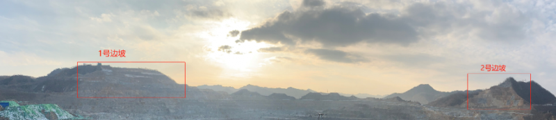 本项目采用LR型号Polaris扫描仪,最远测程可达2000米,矿区面积大约为2.5km²,利用远程扫描仪的优势可监测到整个矿区。项目监测目标包括对整个矿区的监测,以及两处人工高陡边坡,1号边坡的测程约为1.4km, 2号边坡的测程约为1.7km。