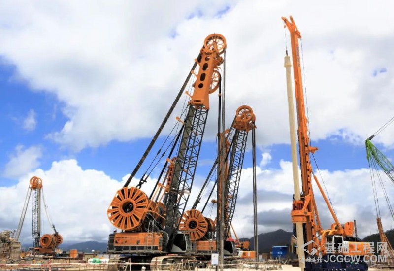 为解决施工难题,提高施工进度,工程施工方组织了5台BC 40 / MC 96铣槽机及3台宝峨BG 38进场施工,为满足施工进度要求,深鸿基又从德国宝峨购入一台加强型BG 38进场施工,此台BG 38配备KDK 380 S大扭矩动力头及直径559 mm钻杆,可以有效保证入岩的垂直度及入岩效率。