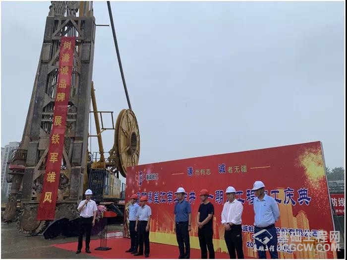 6月22日11点18分,在机器轰鸣和礼炮声中,由谦诚桩工承建华东地区地连墙同厚度最深、最大工作井——秦望通道江南工作井一期项目地下连续墙工程圆满收官,现场举行隆重的完工庆典。