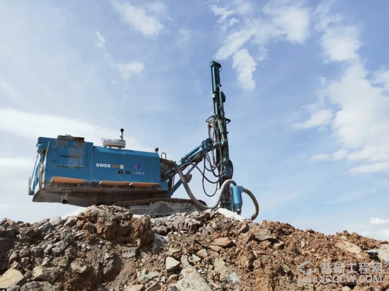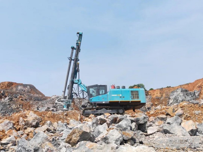 历经严苛的现场工地试验,SWDE165B工作表现稳定可靠,压缩气供气压力为24bar,最大排气量为24.5m³/min,强劲的动力使得其钻孔直径范围达到Φ138~Φ180mm,最大钻孔深度达到36m,钻孔速度与范围都达到甚至超过预期,非常适合水泥及金属矿山的开采。